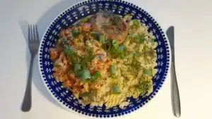 Samal ajal kui köögivili haudub, keeda valmis makaronid ning küpseta teisel pannil kanakotlett kuldpruuniks.